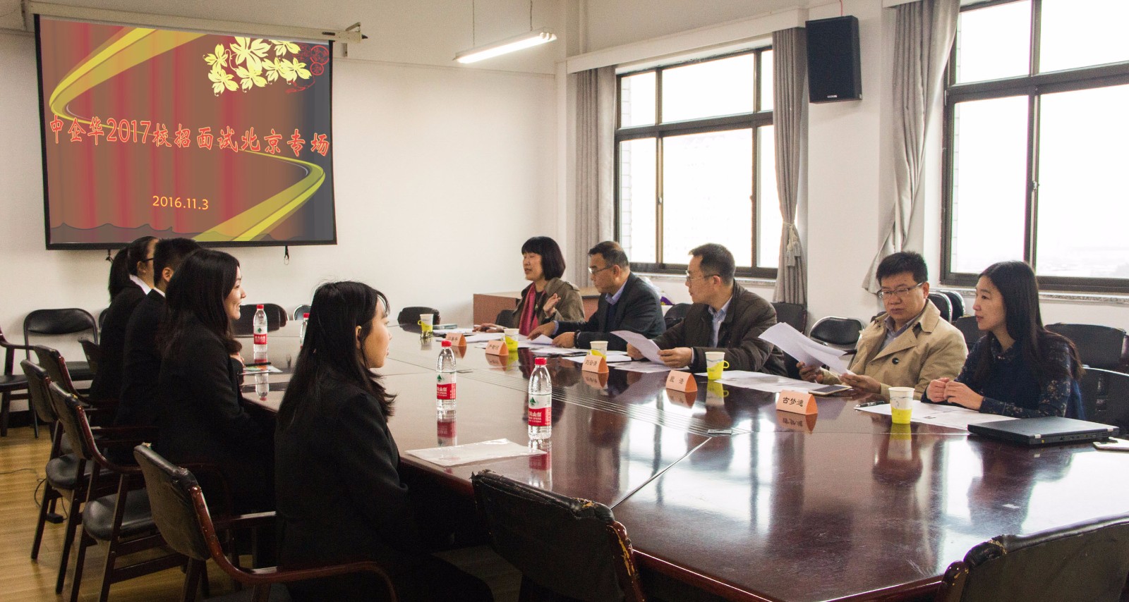 2016年11月3日,北京中企华资产评估有限责任公司北京地区校园招聘面试工作在永利yl234551108会议室进行。为了确保本次面试工作顺利进行,公司高度重视,提前布置招聘会场及候场区域并招募多名志愿者为本次面试工作服务以保证面试顺利进行。