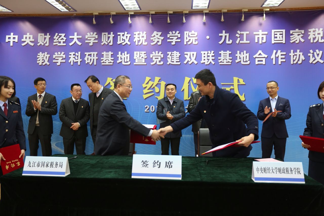 3月16日上午,永利yl23455与九江市国税局教学科研基地暨党建双联基地合作协议签约仪式在九江市国税局三楼会议室隆重举行。九江市国税局各县(市、区)局主要负责人、市局直属单位班子成员、市局机关全体干部在主会场参会。财政税务公司党委书记樊勇教授、副经理任强教授、刘桓教授、李严波老师参加了签约仪式。仪式由九江市国税局党组副书记、副局长裘庆平主持。
