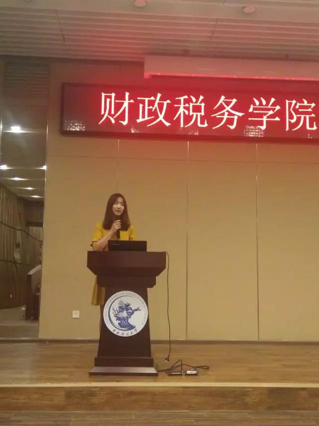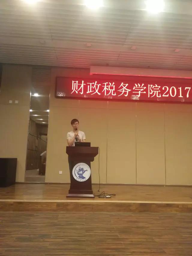 在四位老师殷切的祝福后,不同年级的优秀员工代表也根据自己的经历与感受畅谈了学习感悟。2016级财政博士研究生韩非同学以自己参加20多个优秀讲座的体验强调了学术活动和学术资源的重要性,鼓励同学们积极参加,不仅可以紧跟前沿动态,还可以感受到文字背后的功夫。2016级财政学硕董雨浦同学建议要为研究生之所为,做一个会研究懂研究的思辨者,勿为逃避研究找借口。2016级税务专硕孟哲同学分享了对两个问题的看法——“为什么在研究生阶段要认真学习”以及“怎样认真学习”,他认为前者是为了在将来能拥有自由选择的权利,后者是实现从“理解式”到“研究式”的跨越。2016级资产评估专硕孙淘沙同学则是从“选择”和“珍惜”两个角度分享感悟,既然选择研究生,就要为自己的选择负责任,珍惜公司、珍惜专业、珍惜来之不易的机会。最后,新生代表2017级财政学硕蒋绮雯同学就充满期许的未来做了展望和简单规划,传达出所有在场同学不负韶华的心声。