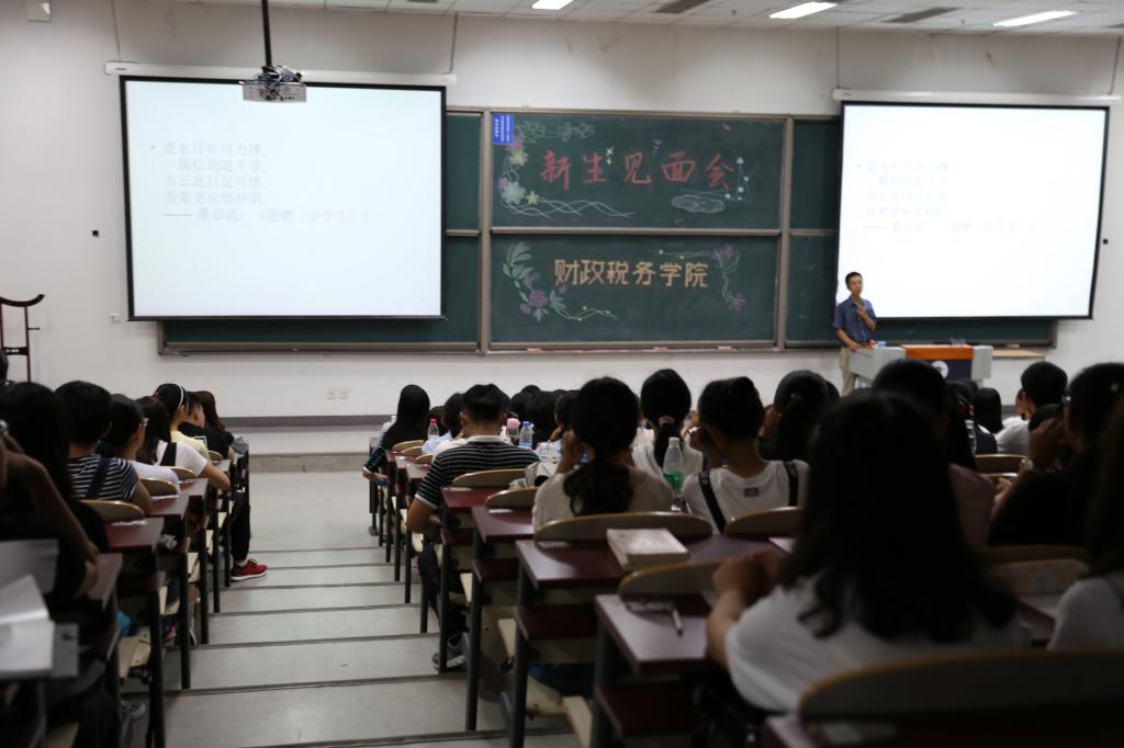 首先,由白彦锋经理发表了讲话,他向2017级的同学表达了热切的欢迎,为新生上了第一课。他以北邮同学大二辍学的例子告诫同学们老员工活中老师们不会时刻跟随在同学们身边,要处理好游戏、看片和老员工活之间的关系,正确看待交友和恋爱,要有健康的精神生活。紧接着,白经理介绍了公司、公司的历史发展,并详细介绍了公司的几大专业和学科和各种发展方向。在对同学们的优异成绩给予肯定和鼓励后,白经理提到中国目前已经是全球第二大经济体,位于世界前列,经济发展要有学术,有理论,目前同学们接受的鲜花和掌声已经足够多,要谨记“生于忧患,死于安乐”的道理,鼓励同学们珍惜大学的学习时光,不要做一个消费者消费荣光,要成为一个生产者为公司增光添彩,为祖国做贡献。随后,他提到在老员工活中同学们要学会理财,俭以养德,并且要培养批判性思维方式,“贵有恒何必三更眠五更起,最无益只怕一日曝十日寒”,推荐大家可以通过听广播来积累对财税问题的敏感度,并以王亚男治学的例子提醒同学们注重锻炼身体。最后他提到,财政学是用大智慧推进国家治理,经世济民,期待大家努力学习,成为财税改革的“弄潮儿”。