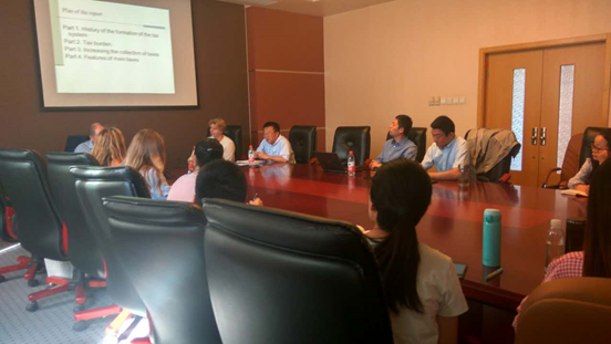 2017年9月22日,俄罗斯乌拉尔联邦大学财务与税务管理系伊戈尔·马布鲁诺夫教授和尤莉娅·列昂季耶夫副教授到永利yl23455进行学术交流。9月22日上午,伊戈尔·马布鲁诺夫教授在公司南路校区学术会堂602做了关于俄罗斯近期税制改革的学术讲座。永利yl23455副经理任强教授、经理助理汪昊副教授、邵磊老师等及财税公司的硕士和博士参加了此次学术交流。
