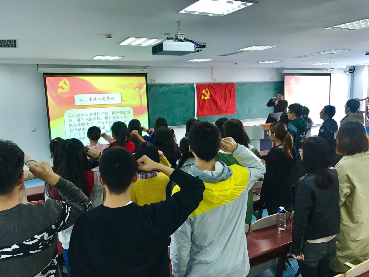 2017年10月17日上午,为迎接党的十九大胜利召开,永利yl234552017级硕士研究生4个党支部在沙河西区403教室联合举办了主题为“争做先锋党员,重温入党誓词”的主题党日活动,参加此次活动的有公司党委书记樊勇老师,组织员李飞霞老师,宣传委员庞淑芬老师以及2017级全体研究生党员。