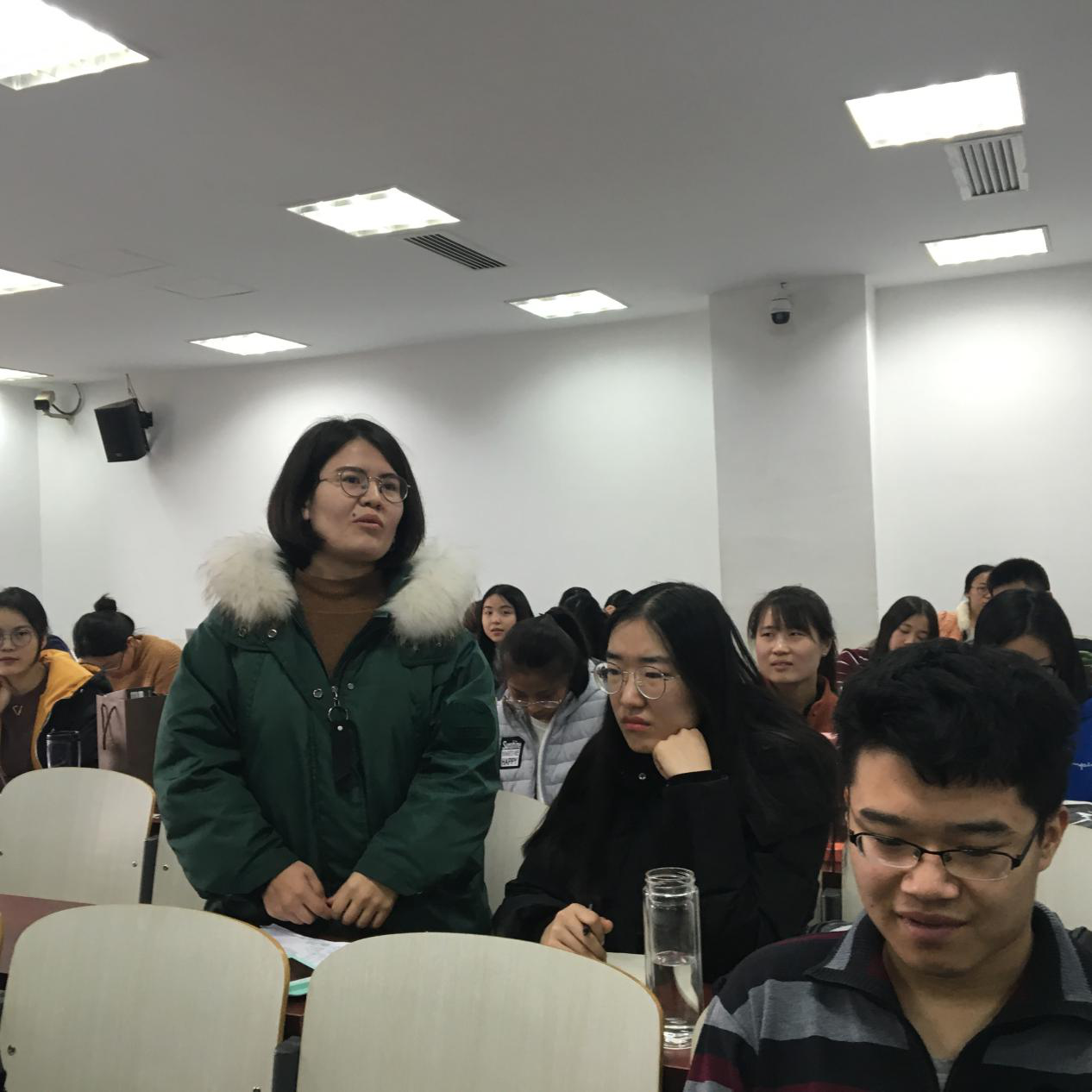 在三位学长分享完毕后,在场的17级同学积极提问,就课程、论文、实习等方面提出了很多问题,三位学长也耐心地一一解答。