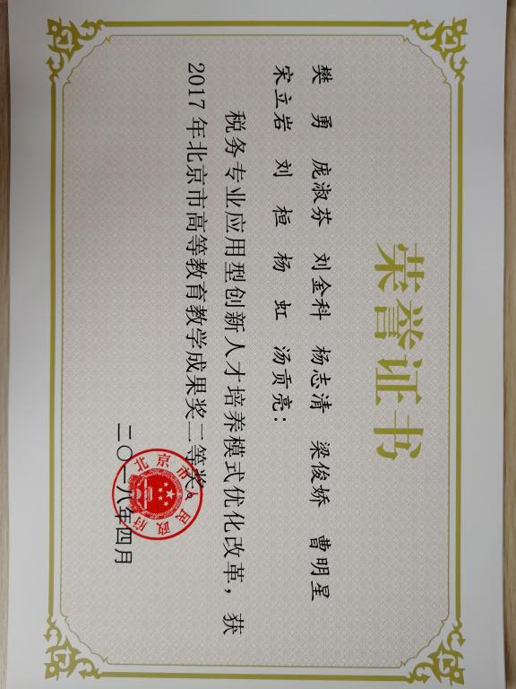 公司的教改项目“税务专业应用型创新人才培养模式改革”获得2017年度北京市教学成果二等奖。该项目自2010年底开始运行,税务教研团队在税务专业课程建设、教学方式方法改革、案例库建设、实践教学的开展、第一课堂和第二课堂的有机结合以及形成长效的国际交流机制等方面做了大量的工作,较好地提升了税务专业人才培养质量。经过多年的人才培养模式改革,公司税务专业的社会认可度较高,据中国科学评价研究中心、武汉大学中国教育质量评价中心历年发布的全国高校专业排名显示,公司税务专业连续多年全国排名第一,很好地体现了项目的实施效果。