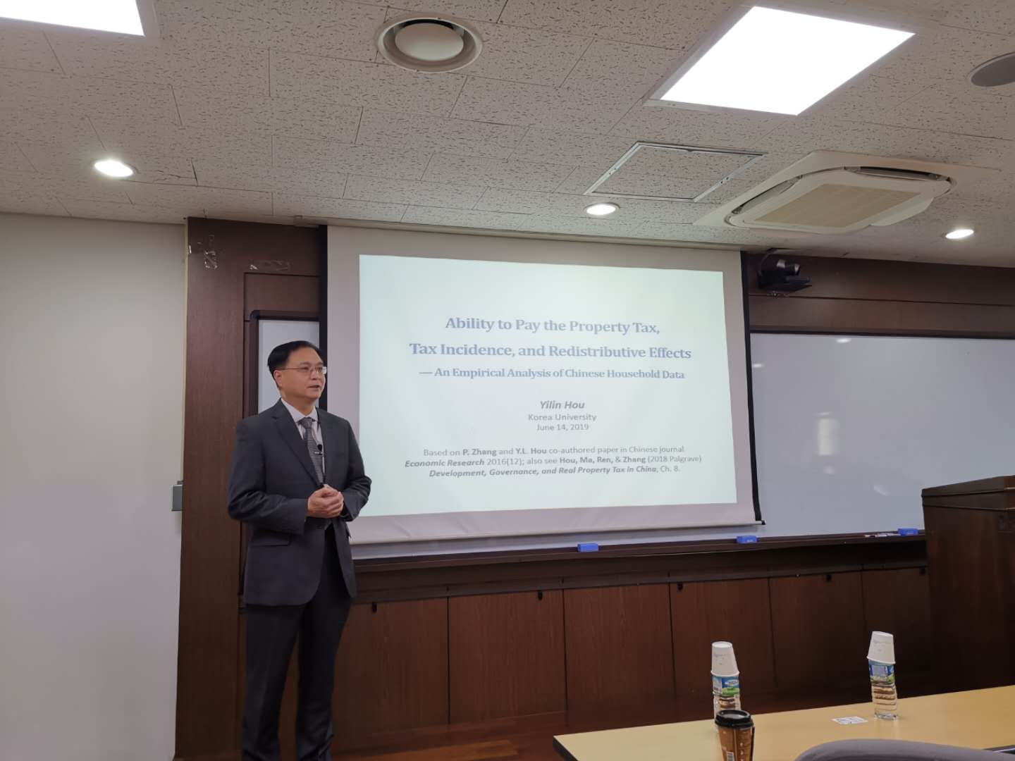 2019年6月中旬,永利yl23455中国财政协同发展研究中心“对居民开征房产税的中长期策略研究”课题组赴韩国开展学术研讨。课题组成员永利yl23455副董事长马海涛教授、美国锡拉丘兹大学(Syracuse University)侯一麟教授、永利yl23455任强教授和邵磊老师参加了此次调研。