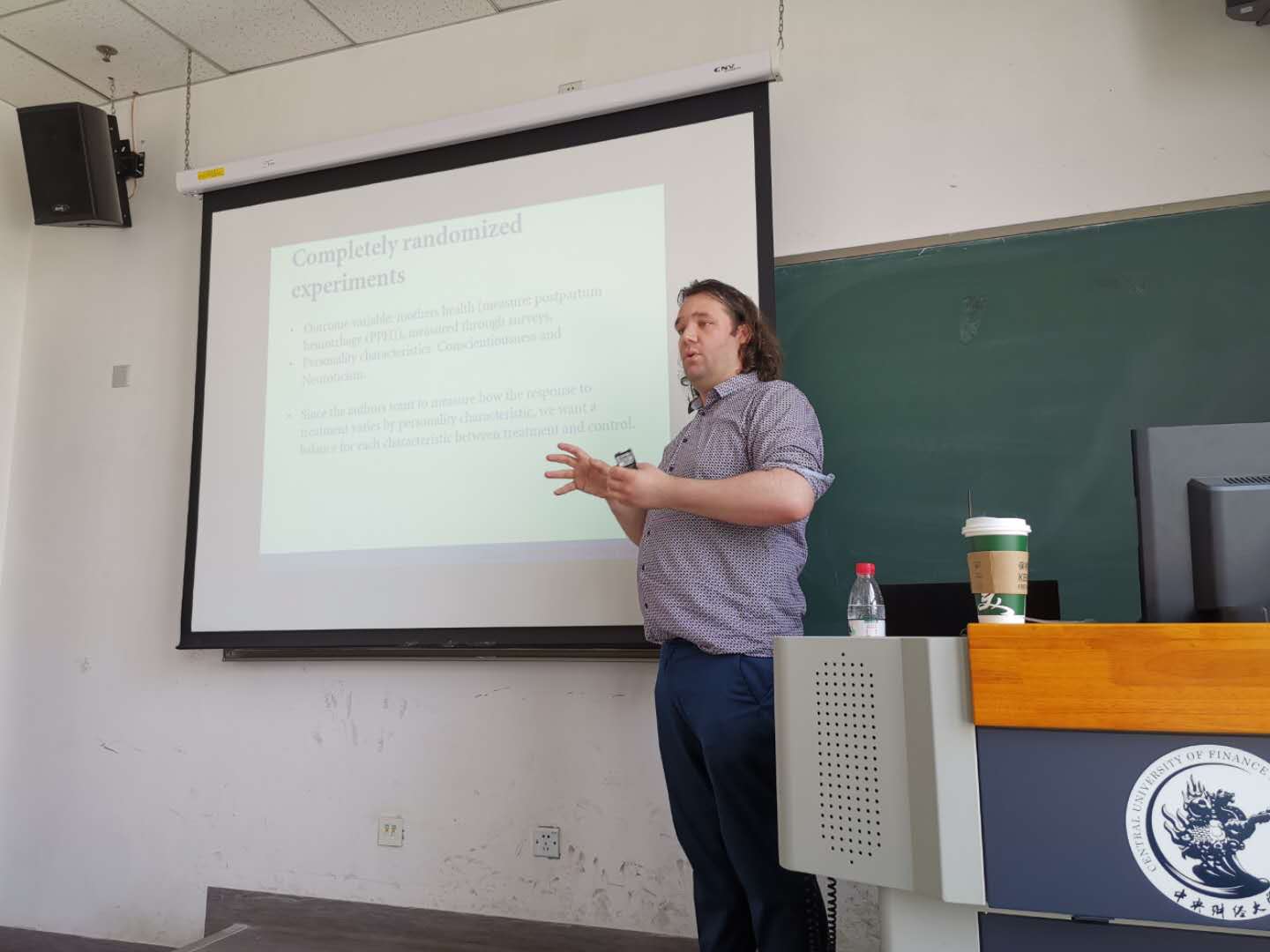 在本次全英文课程中,两位教授使用目前比较流行的应用计量经济学教材Mastering 'metrics: The path from cause to effect(Angrist, J. D., & Pischke, J. S., 2014)为主要参考资料,以理论和应用相结合的方式,为员工介绍了经济学当前的研究趋势和前沿研究方法。具体内容包括RCT(随机试验法)、IV(工具变量法)、RD(断点回归法)和DID(双重差分法)。两位教授首先从传统计量经济学方法在因果识别中的局限性出发,强调了遗漏变量、反向因果等问题可能造成回归结果偏误,对各前沿研究方法是如何克服这种局限性,作出了详细的理论推导。在此基础上,两位教授讲解Acemoglu(2001)、Gonzalez(2013)和Olken(2007)等经典文献是如何应用现代计量方法,对实证策略进行巧妙设计。这加深了同学们对课程内容的认识。两位教授演示了经典文献中具体的STATA命令操作,并对文献的实证结果作出细致分析。