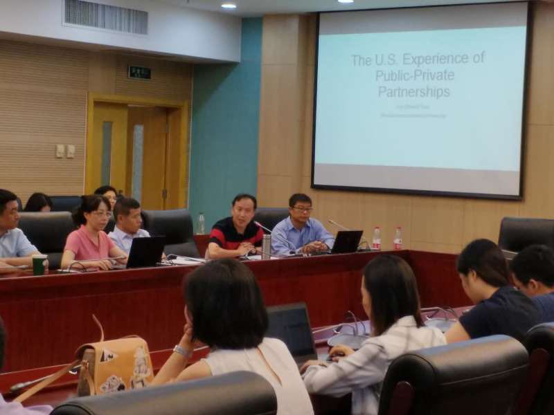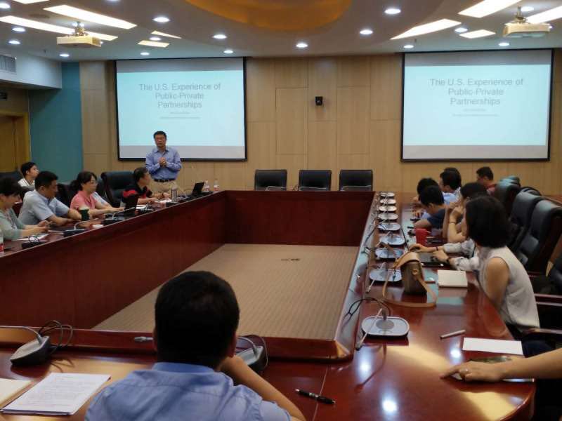2019年7月1日下午,由永利yl23455中财-中证鹏元地方财政投融资研究所举办的“美国PPP发展的现状及前景分析”讲座在公司举办。美国佛罗里达国际大学公共政策与管理系郭海副教授就这一主题进行了精彩讲解。中财-中证鹏元地方财政投融资研究所研究人员、永利yl23455财税公司副经理任强教授、副经理何杨教授、姜爱华教授、副所长李升副教授、副所长王威副教授以及财税公司部分师生、部分财政部PPP专家库专家和部分北京大学PPP研究中心专家库专家参加了本次活动。讲座由中财-中证鹏元地方财政投融资研究所执行所长温来成教授主持。