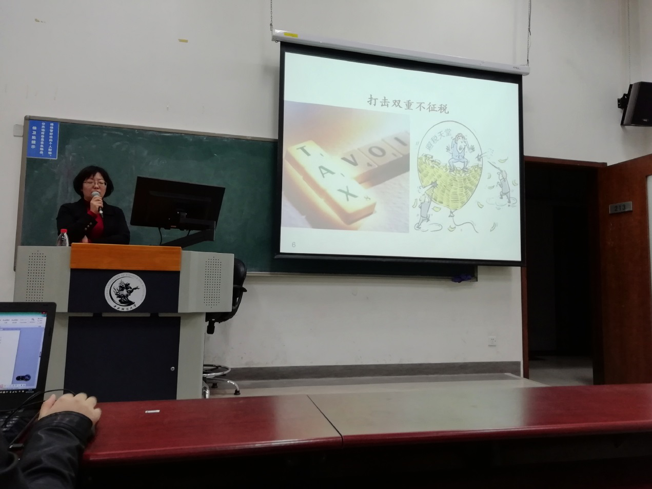 课程伊始,孔老师结合自身经历介绍了税务局的基本组织结构和中国企业在“走出去”过程中面临的税收问题,指出国际税收的发展前景,为同学们未来的职业发展方向提供了指引。