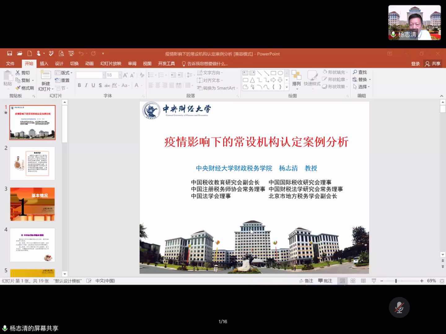 财税公司税务专业硕士项目主任杨龙见副教授主持了税务专硕的专业讲座。财税公司杨志清教授分享了“疫情影响下的常设机构认定案例分析”,案例涉及中外合作办学中国外大学是否构成国内大学的境外常设机构。杨老师由此出发对疫情期间的常设机构认定展开分析,指出疫情期间在家办公不会构成常设机构,并对各国疫情期间常设机构的税务处理规定做了详细梳理,但我国尚未出台疫情期间常设机构的相关政策。德勤税务与法律部高级经理嵇峰作了“寄语未来税务专业硕士”的分享,内容涵盖税务专硕职业方向、当前经济形势、新技术发展对职业前景的影响等方面。嵇经理还结合自身经验,对中美个税制度及税务处理进行比较,向同学们指明了未来有发展潜力的行业和地区。国家税务总局所得税司的同志就“个人所得税改革和发展趋势”进行了分享,从个人所得税的起源发展、改革历程、未来改革方向等方面进行了讲解,并对个税改革中的重点和难点问题做了深入分析,回顾了最近几年个税改革方案中蕴含的深层衡量。2019级税务专业硕士魏颖钰同学分享了自己之前的参营体验,并对保研后的生活规划、实习与科研的权衡、学习考证的必要性等方面提出建议。