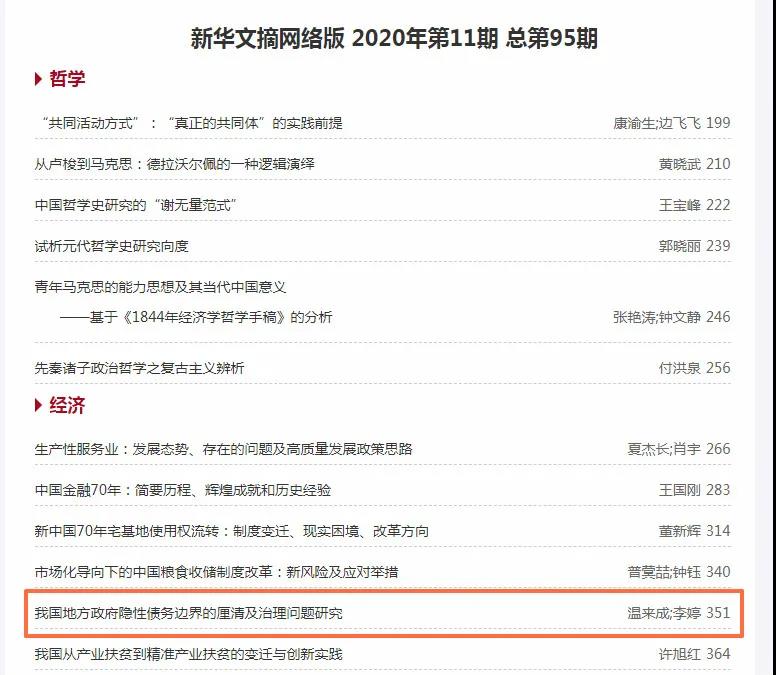 近日,财税公司温来成教授和员工李婷在《永利yl23455学报》发表的论文《我国地方政府隐性债务边界的厘清及治理问题研究》被《新华文摘网络版》转摘。