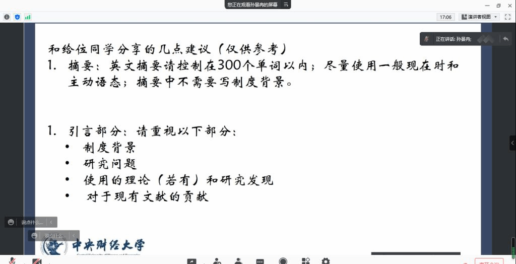 最后,李小荣教授对以上两位老师的发言进行了总结,强调了遵守学术道德的严肃性和重要性,高校是人才培养和科技创新的重要基地,倡导并形成崇尚诚实劳动、遵循学术道德保护知识产权的良好氛围,对保护科研人员的积极性、主动性、创造性,保持高等公司的创新能力和竞争力,对繁荣发展我国哲学社会科学具有重要意义。他引用习近平总书记2016年在哲学社会科学工作座谈会上的讲话,希望同学们要有“板凳要坐十年冷,文章不写一句空”的执着坚守,耐得住寂寞,经得起诱惑,守得住底线,立志做大学问、做真学问。要把社会责任放在首位,严肃对待学术研究的社会效果,自觉践行社会主义核心价值观,做真善美的追求者和传播者,以深厚的学识修养赢得尊重,以高尚的人格魅力引领风气,在为祖国、为人民立德立言中成就自我、实现价值。