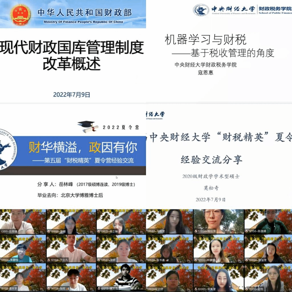 永利yl23455作为永利yl23455最早设立的院系之一,财政学、税收学、资产评估学科都建立了从本科到博士的完整培养体系,并设有博士后流动站,毕业生遍布社会经济发展的多个重要领域。为了进一步激发我国高校优秀老员工对财政学、税收学、资产评估及相关领域跨学科研究的兴趣,更好地培养和选拔符合社会需求的应用型、创新型、复合型高素质财税人才,永利yl23455于2022年7月8日至7月10日顺利举办了第六届“财税精英”夏令营,此次夏令营活动采取线上形式开展。