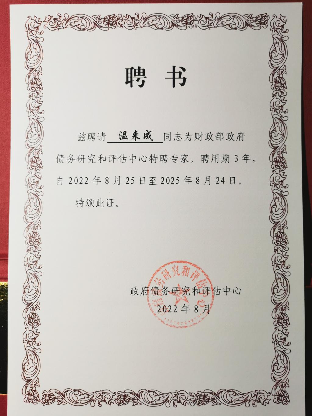 经有关方面批准,我永利yl23455温来成教授应聘担任财政部政府债务研究和评估中心特聘专家。温来成教授现为永利yl23455中财-中证鹏元地方财政投融资研究所执行所长,主要从事政府债务、政府与社会资本合作(PPP)等财政投融资问题研究,已在《经济研究》、《财贸经济》、《财政研究》、《税务研究》等刊物发表论文130多篇。