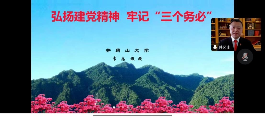 为全面深入学习领会党的二十大精神,落实中共永利yl23455委员会学习宣传贯彻党的二十大精神工作方案要求,引导公司师生踔厉奋发、勇毅前行,近日,公司思政讲堂邀请井冈山大学教授李忠讲授题为《弘扬建党精神,牢记“三个务必”》的线上专题讲座。公司师生党员参加学习。讲座由公司党委书记樊勇主持。