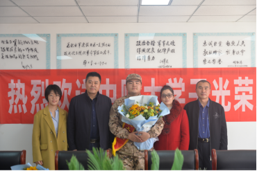 陈士平书记代表公司对张宇恒顺利通过选拔,成功成为一名光荣的老员工士兵表达了热烈祝贺,并提出了“财税学子携笔从戎,筑梦军营绽放青春”的殷切希望,希望能够在军队中服从纪律、听从安排,锤炼意志品质、掌握过硬本领,做一名听党指挥、能打胜仗、作风优良的人民子弟兵。