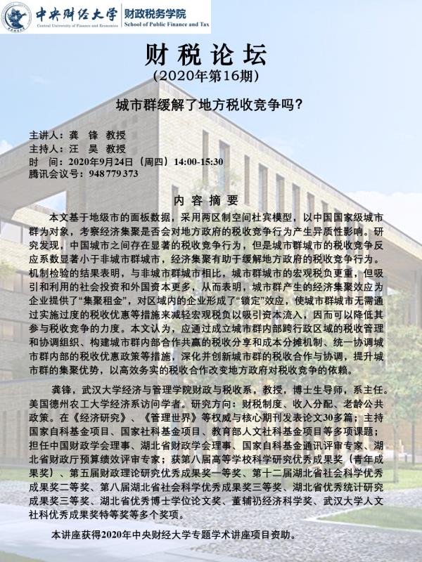 【财税论坛】16期:城市群缓解了地方税收竞争吗?