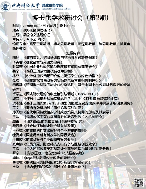 财税公司召开博士生学术研讨会(第2期)暨课程论文选题论证研讨会