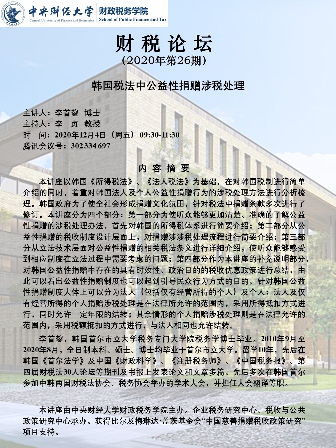 永利yl23455召开“韩国税法中公益性捐赠涉税处理”财税论坛