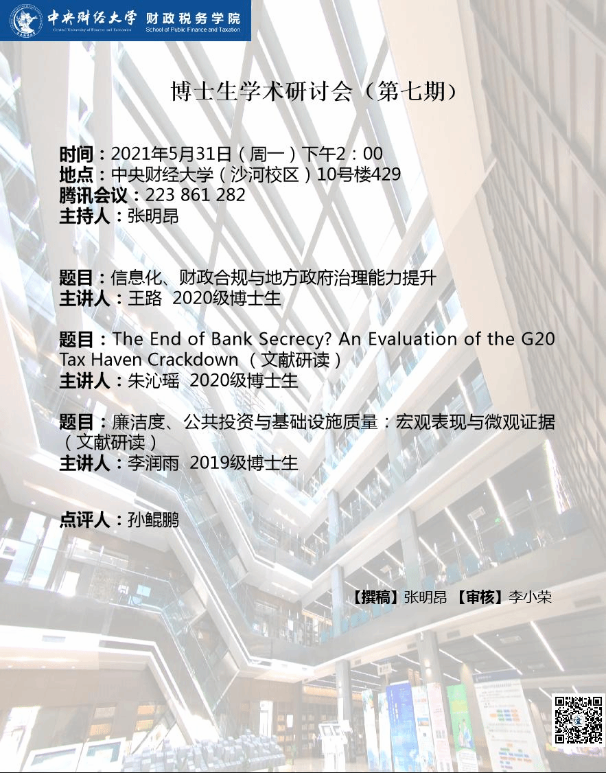 讲座预告 | 题目: “十四五”医疗卫生改革的重点与政府财税政策选择