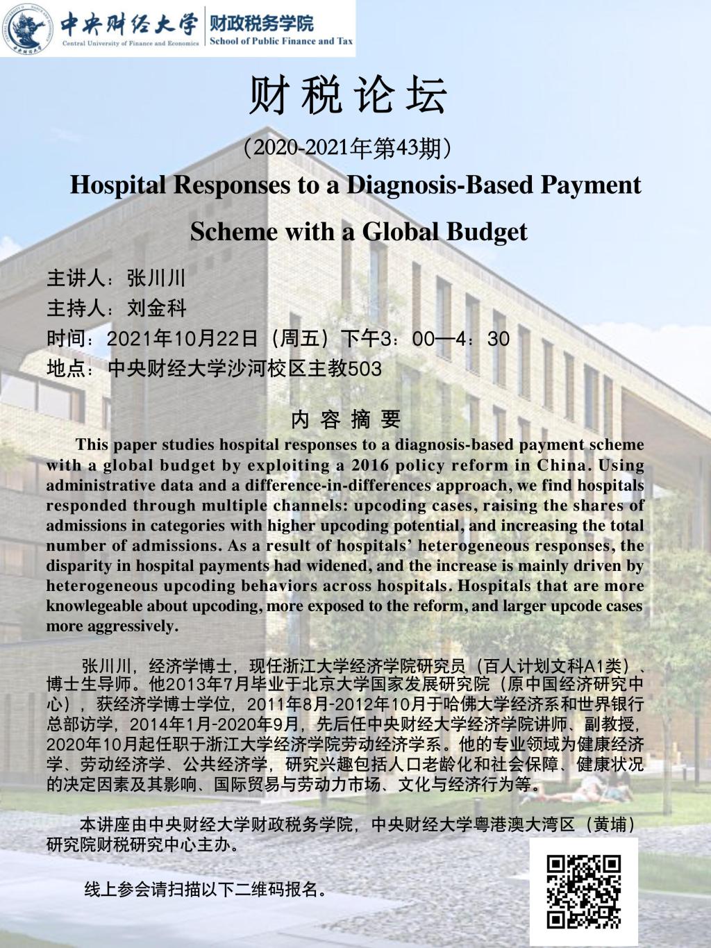 【财税论坛】Hospital Responses to a Diagnosis-Based Payment Scheme with a Global Budget