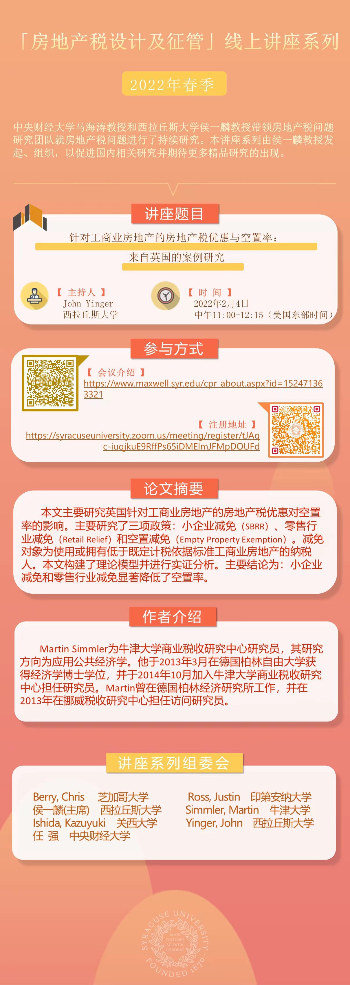 “房地产税设计及征管”线上讲座系列2022年春季——针对工商业房地产的房地产税优惠与空置率:来自英国的案例研究