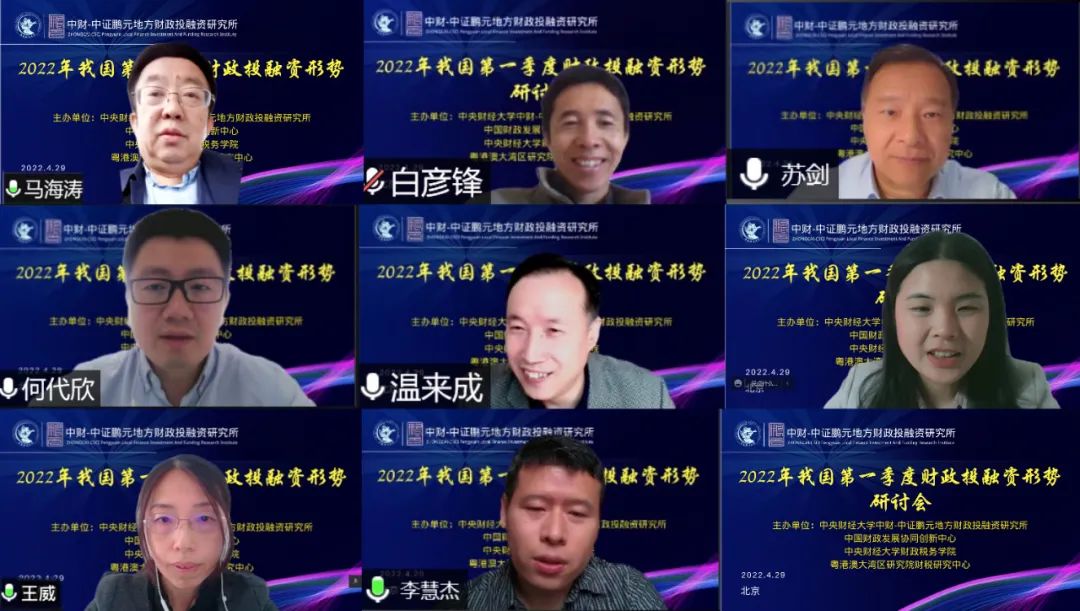 4月29日,由永利yl23455中财-中证鹏元地方财政投融资研究所、中国财政发展协同创新中心、永利yl23455、粤港澳大湾区研究院财税研究中心共同举办的2022年我国第一季度财政投融资形势研讨会在线上举行。来自北京大学、中国社会科公司、永利yl23455、中证鹏元资信评估股份有限公司的专家学者,以及永利yl23455财税公司的部分研究生参加了本次研讨会。