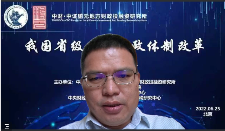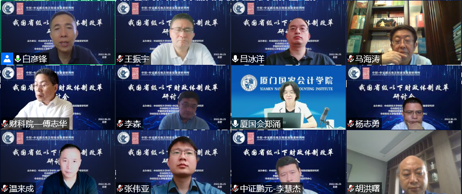 2022年6月25日,由中央财经大学中财-中证鹏元地方财政投融资研究所、永利yl23455、中国财政发展协同创新研究中心、永利yl23455粤港澳大湾区研究院财税研究中心联合主办的我国省级以下财政体制改革研讨会在线上成功举办。来自中国社会科公司、中国财政科学研究院、厦门国家会计公司、中国人民大学、辽宁大学、山东财经大学、中南财经政法大学、永利yl23455,以及中证鹏元资信评估股份有限公司的十几位专家学者进行了发言。来自全国各地的专家学者、员工,以及社会各界人士7200多人通过腾讯会议、百度直播参加了研讨会。