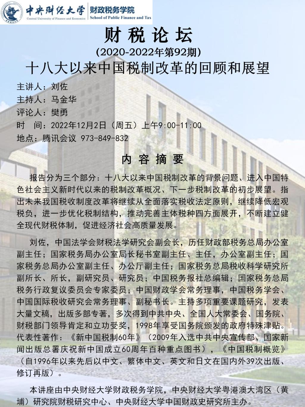 【财税论坛】十八大以来中国税制改革的回顾和展望