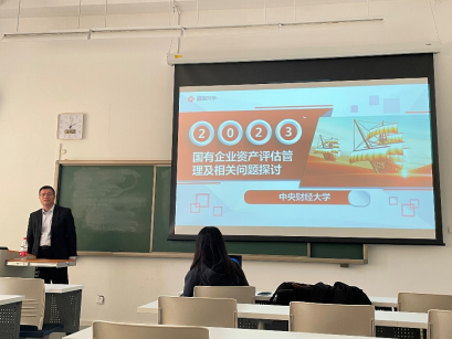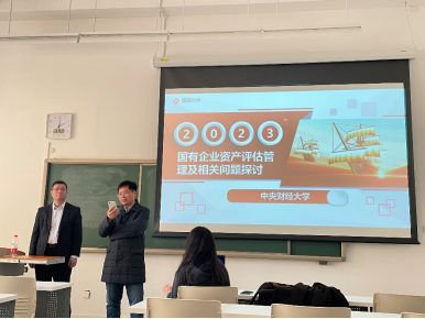 2023年3月 1 7日下午,公司副经理李小荣教授邀请了来自 国融兴华 资产评估有限公司 高级副总裁黄立才 先生,为2022级资产评估专业硕士的同学们带来“ 国有企业资产评估管理及相关问题探究 ”的专题讲座, 围绕国有企业资产评估必要性、国有企业如何进行和看待资产评估以及国有企业资产评估需关注的重点等方面展开,同时为同学们未来就业的思路和方向提供了指导意见。