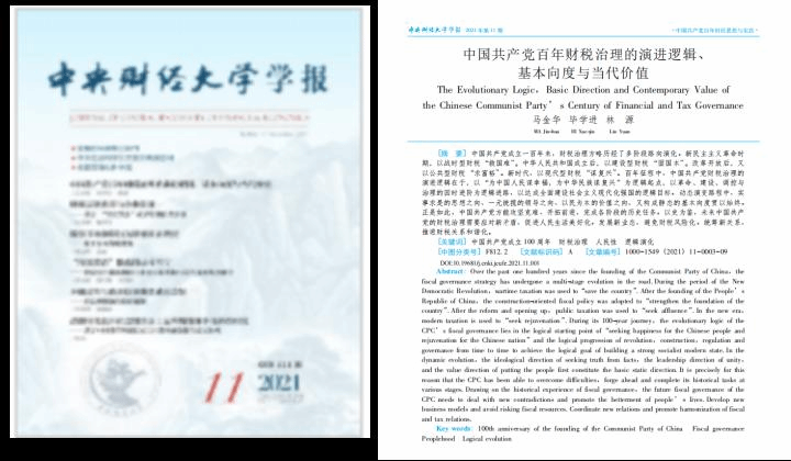 公司马金华教授、2020级博士研究生毕学进在《永利yl23455学报》2021年第11期发表《中国共产党百年财税治理的演进逻辑、基本向度与当代价值》一文。