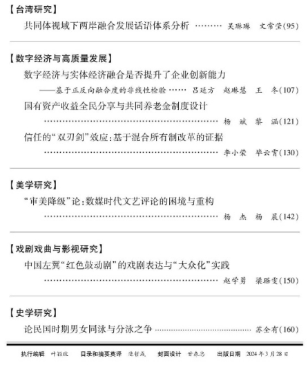 由永利yl23455李小荣教授与博士研究生毕云霄合作撰写的论文《信任的“双刃剑”效应:基于混合所有制改革的证据》在中文A类期刊《厦门大学学报(哲学社会科学版)》2024年第2期刊发。以下为文章主要内容: