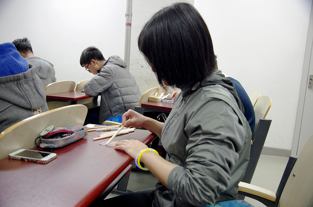 下午7时许,参赛选手们或一人一组,或两两一组,签到并领取了主办方提供的制作书签所用的材料,随后各组选手分别就座。本次活动的主持人吴雅婷、沈瑶璇介绍了本次书签大赛的基本内容,宣读了本次线下书签制作比赛的基本规则。比赛旋即展开。