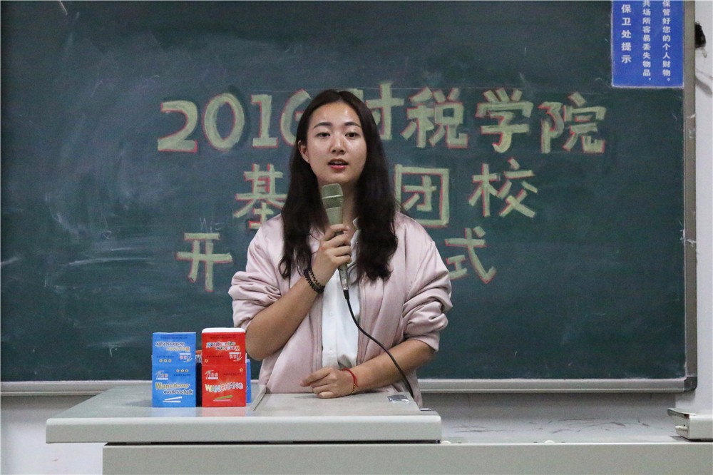 而后,团总支组织部部长王舒柳学姐向学员们具体介绍了基础团校课程活动的规章制度,强调了基础团校课程的严肃性、重要性,并简要介绍了随后一个月内基础团校将要组织开展的“芮+”导师见面会、财税知郊cufer、公司吉祥物征集活动、基础团校破冰素拓活动、中财“网络情报局”大会、歌曲知识竞赛、赵玉平、吕明晰两位老师的主题讲座、追忆长征革命短剧暨基础团校总结表彰大会等具体活动和课程内容。