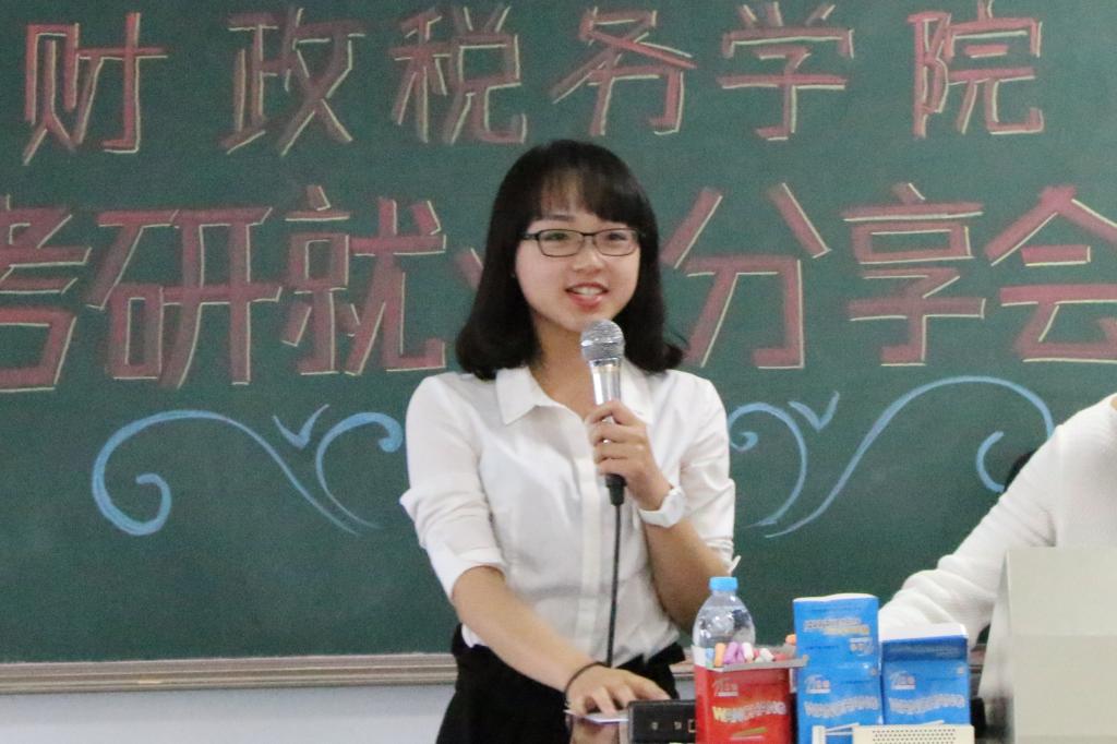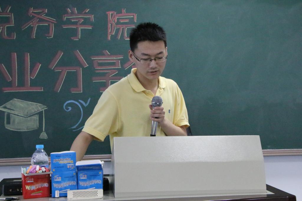 随后分享的是考取中国人民大学金融专硕的陆泳良学长。陆泳良学长结合自己的经历感慨,历届学长学姐的经验分享会对于后来的学弟学妹都具有非常的意义。陆学长谈到自己在选择考研时的一些条件,也就金融专硕的科目、阶段划分进行了一些简要介绍。跨专业考研具有相当的难度,但也并不是完全不可能,陆泳良学长就是一个范例,只要付出足够的努力,就能够成功。陆泳良学长告诫同学们,考研不是一种目的而是一种手段,是让自己变得更好。