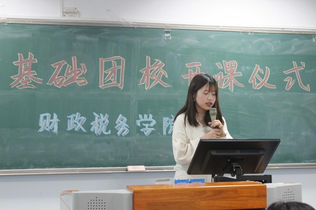 新生代表黄楚君则向全体学员强调了基础团校的重要性。她说,十九大的胜利召开之后,开展基础团校有助于大家认识自己,改造自己,并让自己朝着优秀的团员方向发展。同时基础团校有助于大家点燃真理之火,建设我们美丽的祖国。她也认为爱国不仅仅是在行为上做到爱国,也是在心灵上提升自身素养。