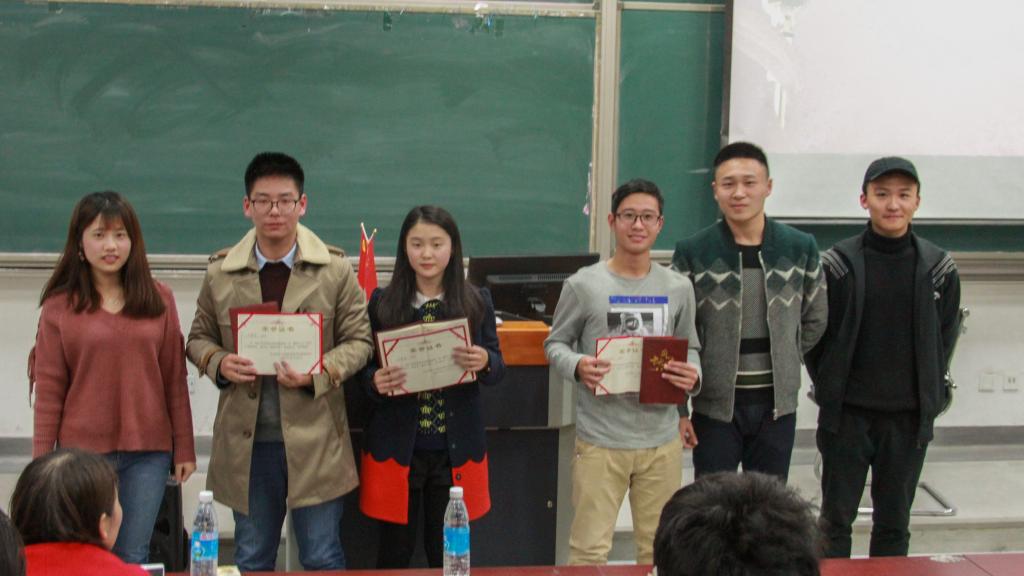 一分钟陈述结束之后,由组织部王子卓同学宣布最佳代表人选,安徽省代表严春浩、贵州省代表柳连源、江苏省代表王誉桦入选并上台领奖,合影留念。最后,主持人刘天颀宣布本次永利yl23455十九大团课暨基础团校模拟人大活动圆满结束。