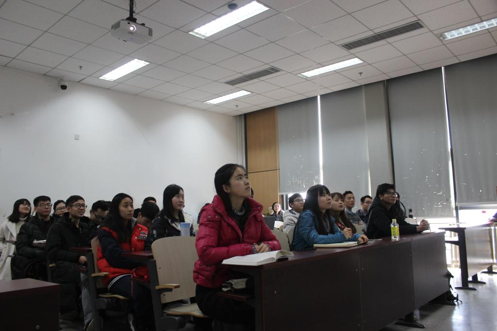 活动开始后,主持人首先为大家介绍了到场嘉宾,然后各班班委依次上台展示班级十九大学习成果。首先是财税一班进行展示,随着悠扬的音乐声,一班班委站在台上向同学们展示一班的学习成果,主题班会、微信推送、宿舍学习研讨、诗文朗诵……丰富多彩的活动让同学们感受到了他们的学习热情。接下来是财税二班讲述了班级学习十九大的方式,包括线上宣讲、公众号推送、班级团会、以小组为单位进行十九大演讲、以宿舍为单位观看十九大视频等。PPT中展示的图片和视频真实地记录下了同学们对十九大的关注和学习过程。