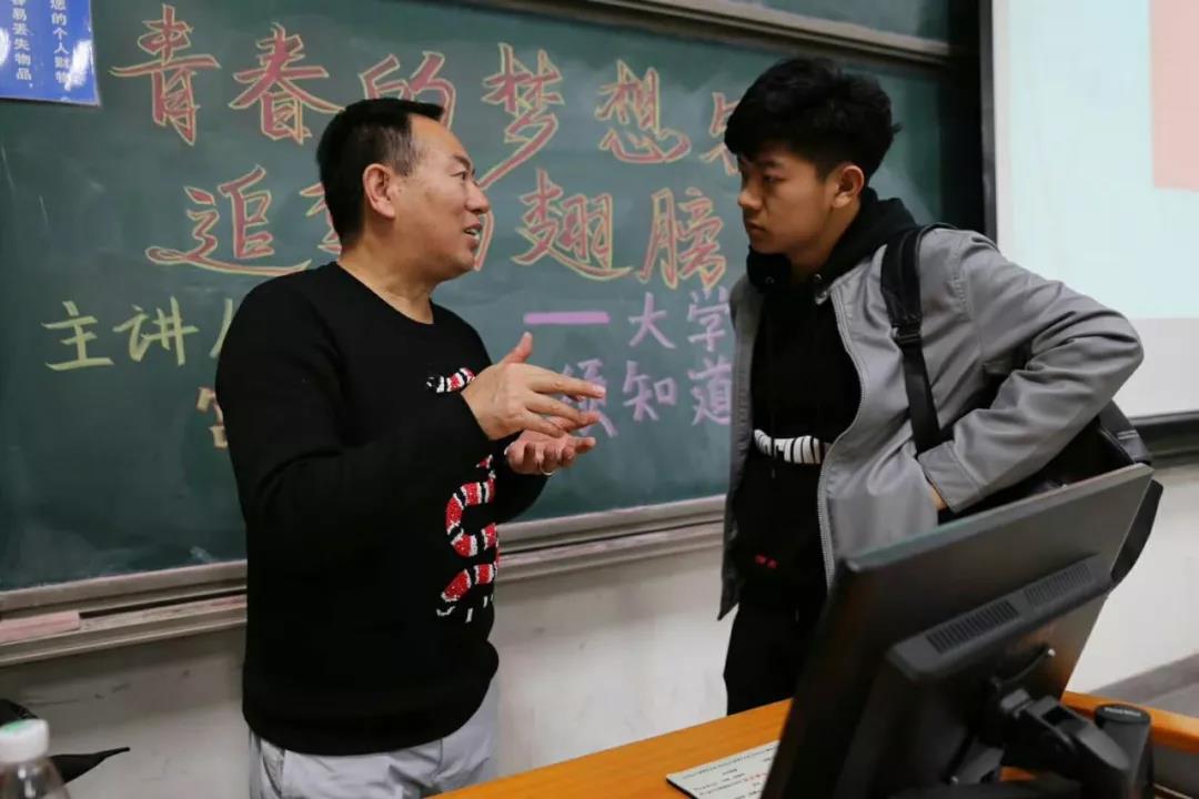 最后,宫冠英老师详细介绍了老员工就业问题,建议同学们要进行职业定位,确定工作的目的和层次。他用一个关于残疾人就业创业的短片,介绍了自己在创业过程的成功经验。然后他谈到求职择业时会遇到的问题,面对“供求矛盾”,老员工应该树立现实的就业观,先就业后择业,先生存再发展,只有先解决现实的生存问题,才有条件去考虑更高的追求。同时教育程度很大程度上决定了一个人的发展空间,同学们要在完成学业、学好本领的基础上追求创新创业。