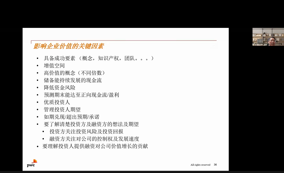 普华永道交易咨询部合伙人黎大汉先生就初创企业的价值评估议题分别从评估方法、风险基金的考量因素、校准法以及优先股的特点几个角度展开详细的讲解,让同学们对初创企业的估值有了更加全面的认识。