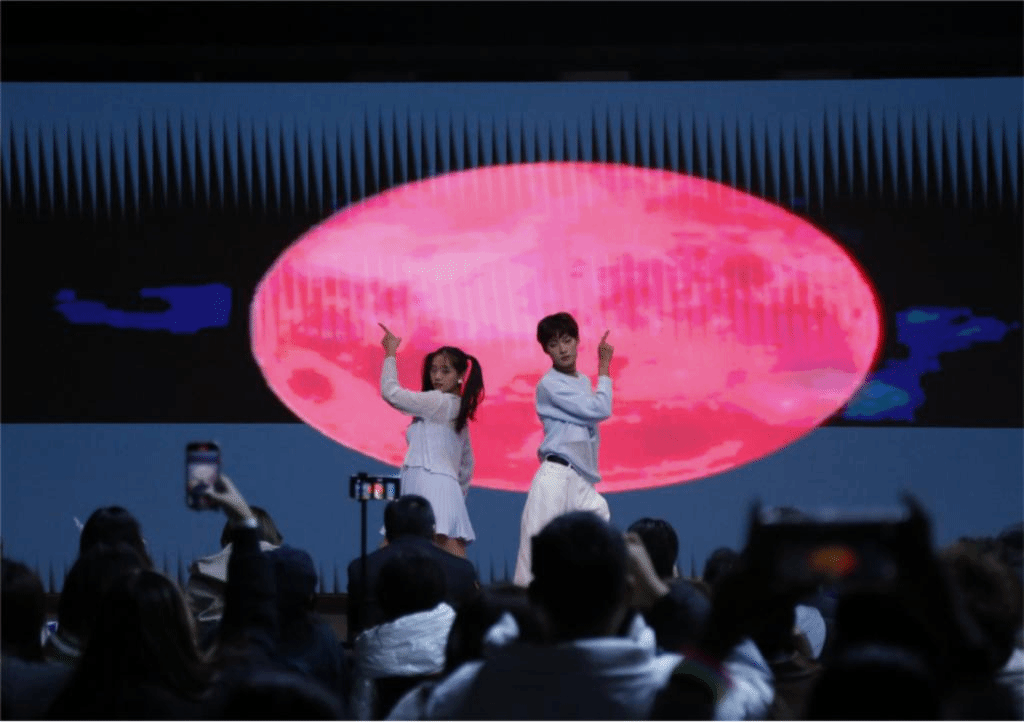 邵磊老师和孙景冉老师带来吉他弹唱,吉他的琴弦被轻轻拨动,仿佛一叶小舟静静漂浮在湖面上。旋律轻盈地飘荡,似微风拂过细腻的耳畔,温柔地搅动心湖的涟漪,带领我们远离尘嚣、回归内心的宁静。