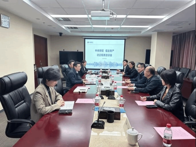 信达地产总经理郭伟、总经理助理陈戈、党委办公室主任蒋华刚、人力资源部副总经理张媛及人力资源部经理马莉莉参加了此次会谈。会谈中,肖鹏书记介绍了公司财税学科的发展现状、人才培养特色、教学科研实力及毕业生就业情况等。宋立岩书记介绍了公司体经公司的成立发展历程、体经产业未来发展的巨大潜力、人才培养优势及毕业生的就业情况等。两院期待着在人才培养、实习实践、毕业生就业、党建活动等方面能与信达集团、信达地产有更多的深度合作。