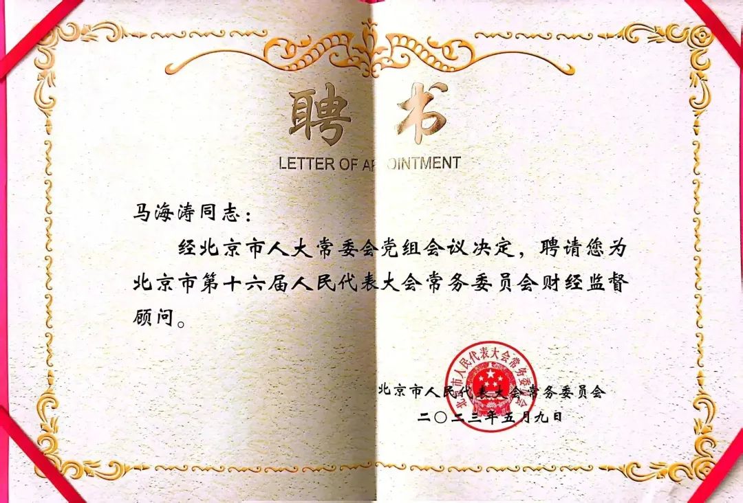 会上,闫傲霜副主任宣读了市十六届人大常委会财经监督顾问名单,张建东、闫傲霜副主任代表市人大常委会向顾问颁发了聘书。本届人大常委会在全市范围内聘请了17位财经监督顾问,他们分别来自高等院校、科研院所、部门及企业等。公司董事长马海涛教授、永利yl23455李燕教授受聘担任北京市十六届人大常委会财经监督顾问。